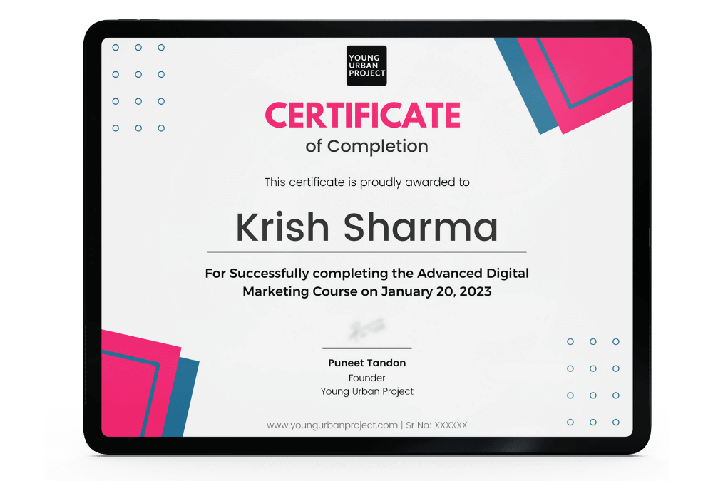 The Advanced Digital Marketing course by Young Urban Project is the most practical and industry-relevant course in the market. It is created by top Industry practitioners who have worked with some of the largest brands out there.